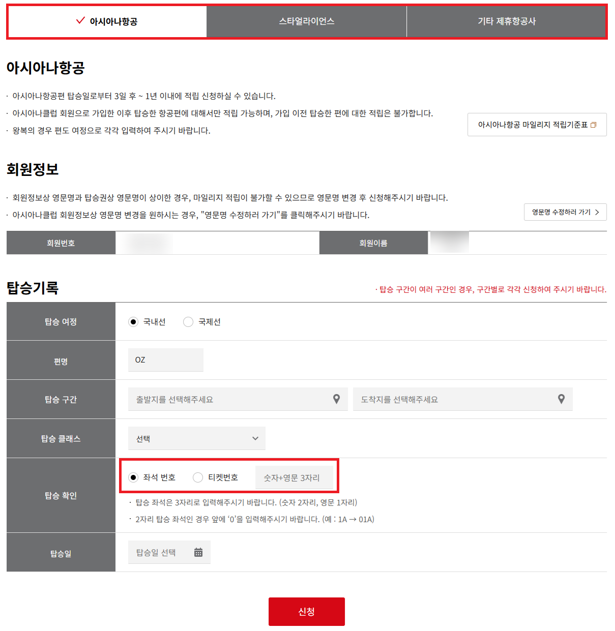 아시아나클럽 회원 가입 전에 탑승한 항공편은 마일리지 적립이 불가합니다. 여행 전 미리 가입하세요.